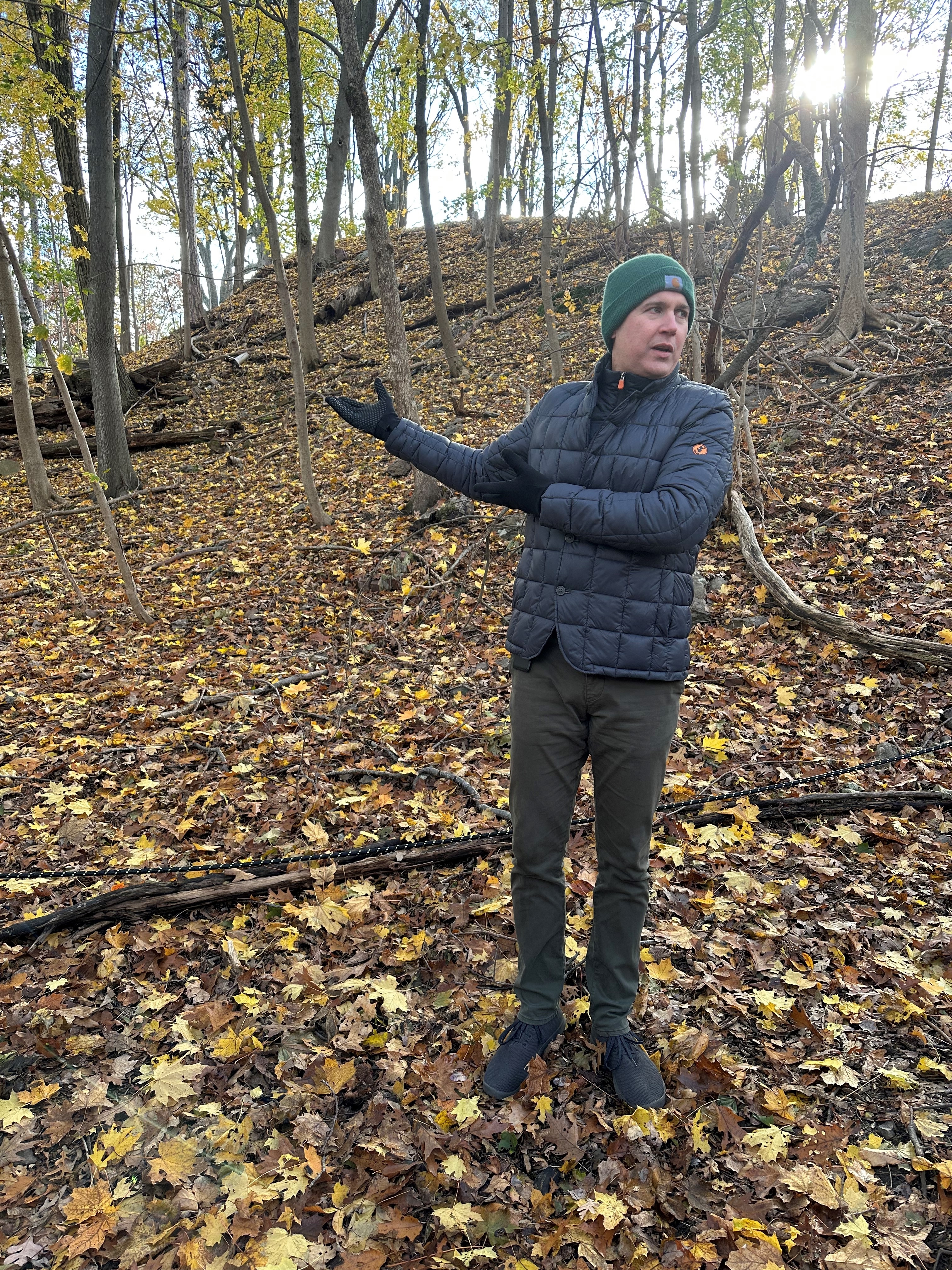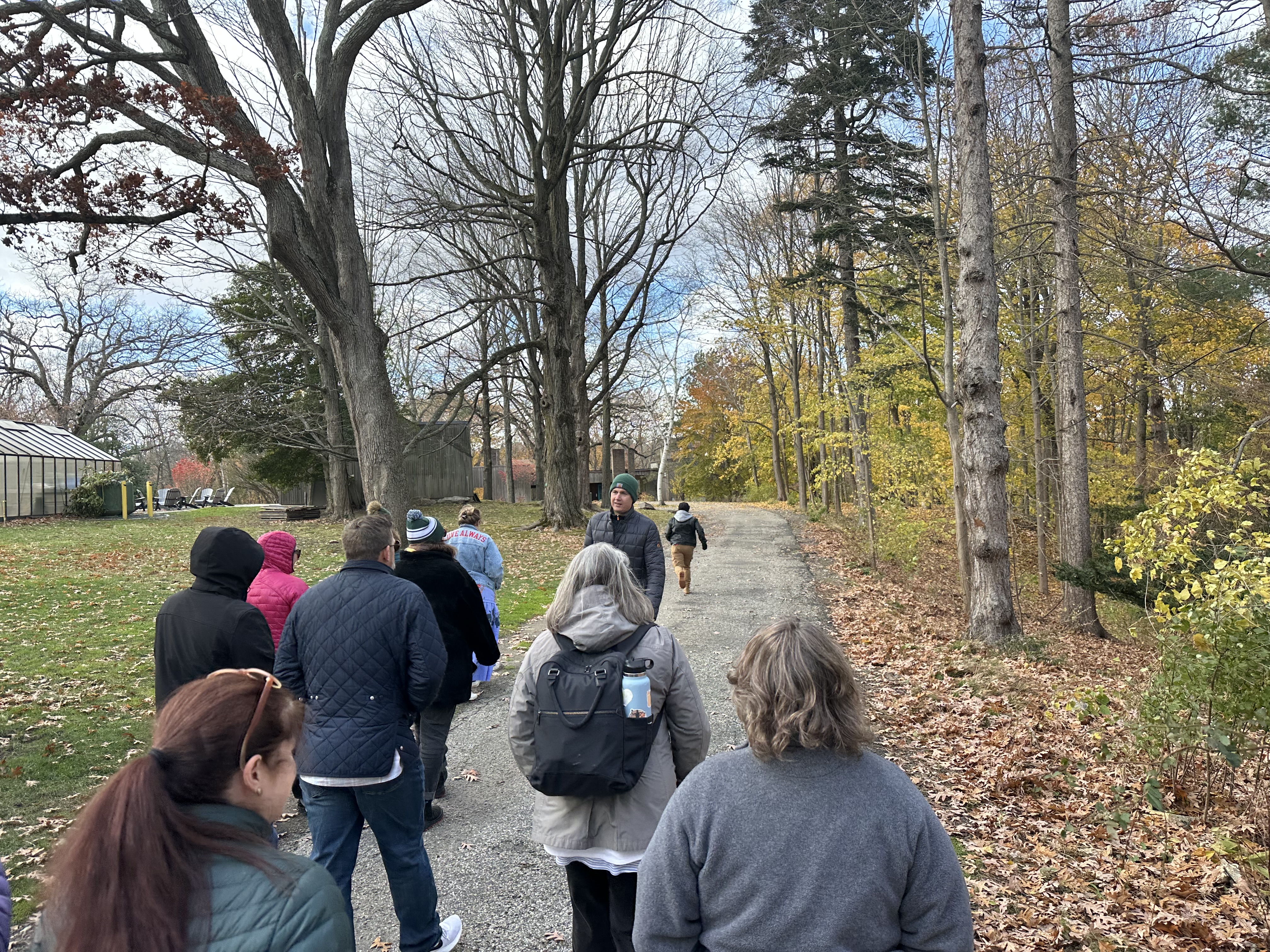 Our walk brought us through the woods, past the pond that supports all of Park’s campus irrigation, around our fields, along our cross-country trails, and to a view very few ever experience as members of the Park community. From a vantage point at the northwest corner of the North Field, the panorama stretches from the PreK playground to the turf field and ropes course, the white house at 235 Goddard, the view up Larz Anderson, across the main field, and back across the North Fields. Expansive, vast, so much already offered and untapped potential.