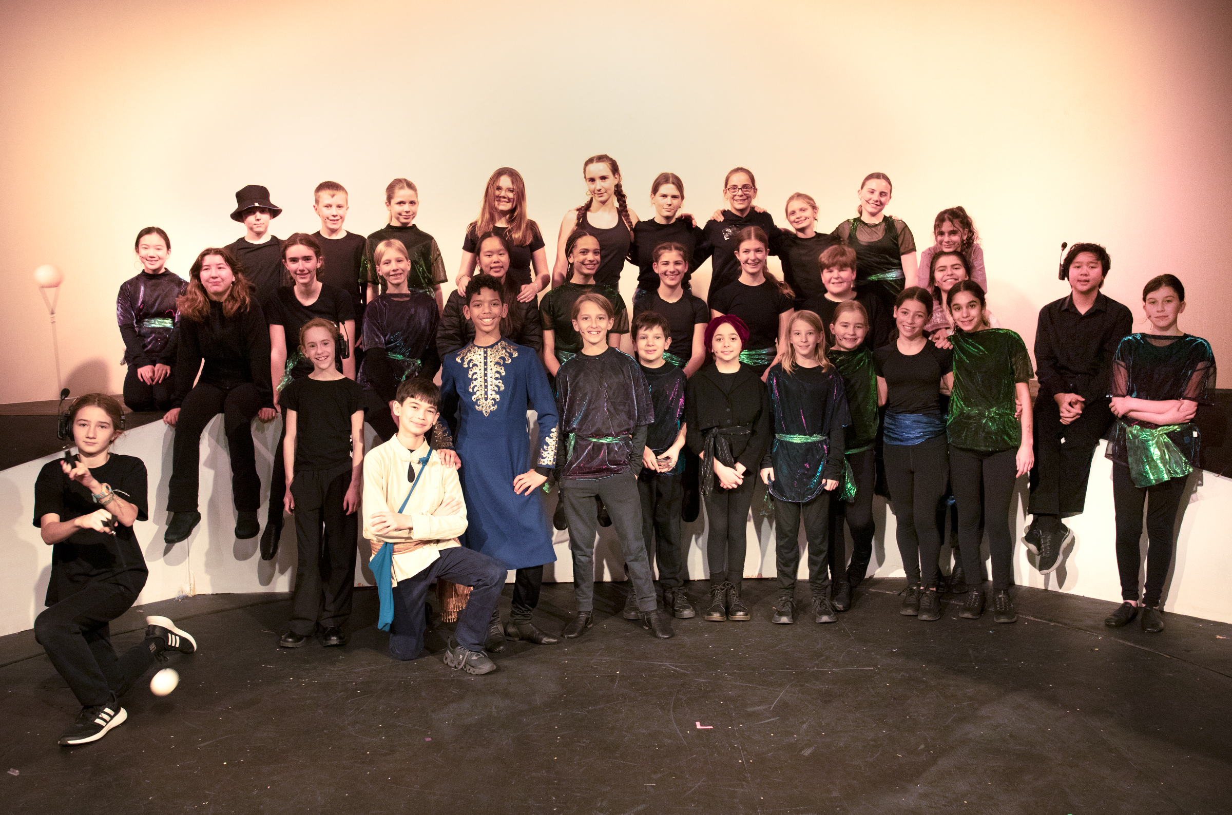 On November 21 and 22, Park’s Theater was filled with audiences eager to watch the Grades 6-8 production of Haroun and The Sea of Stories, a work of magical realism by Salman Rushdie. The play dramatizes the tale of Haroun, the son of a famous storyteller who loses his ability to tell stories after his wife leaves, and Haroun’s quest to restore his father’s storytelling powers by battling a villain who wants to poison the Sea of Stories.