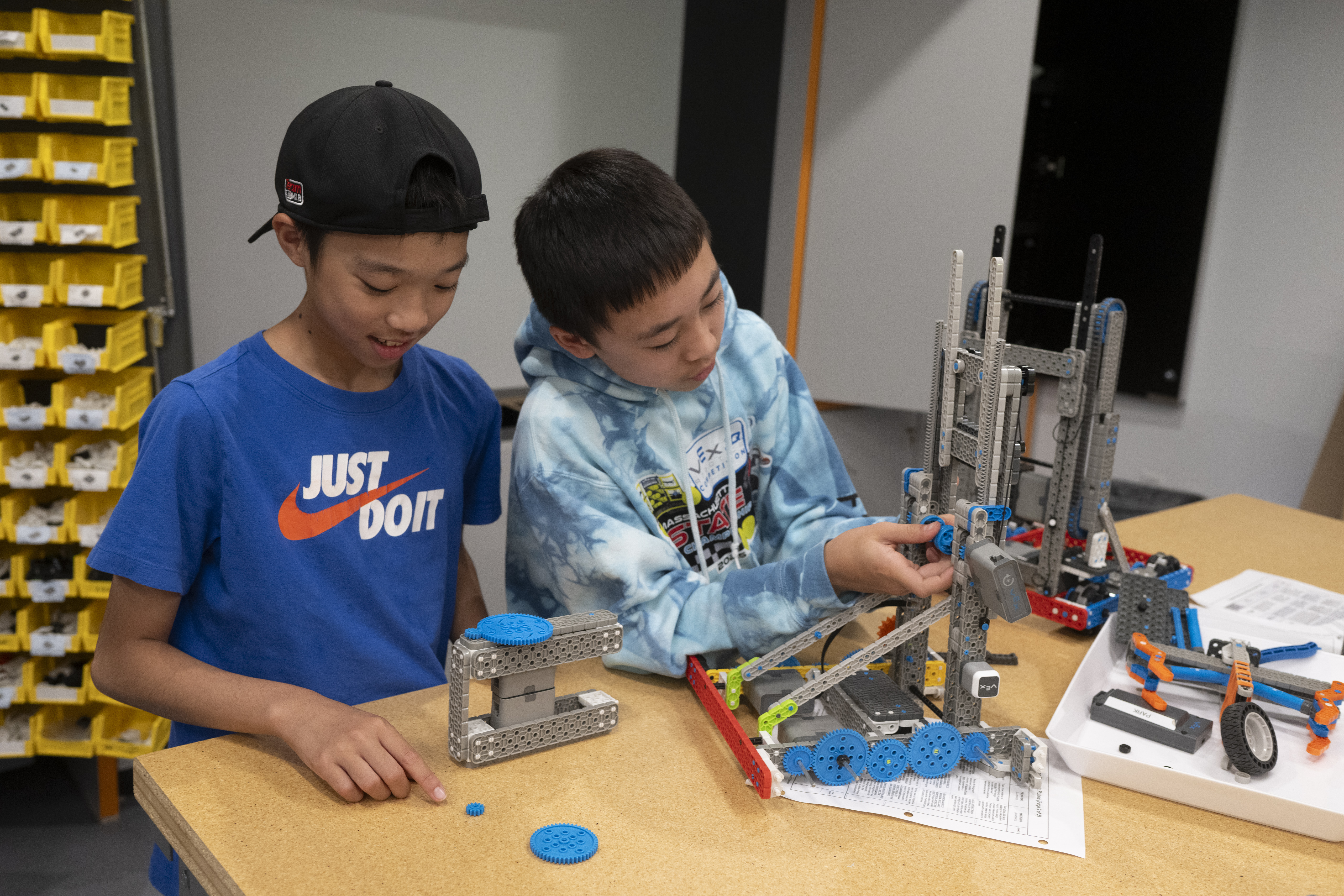 Beginning with the launch of a Competition Robotics program and growing to include Robotics electives to meet burgeoning student interest, the Robotics programs thrived despite the lack of a permanent space. This summer, the redesign of under-utilized locker room space in the West Building made a dedicated Robotics Lab possible right next to the gymnasium, underscoring that there are many ways to be part of a team at Park.
